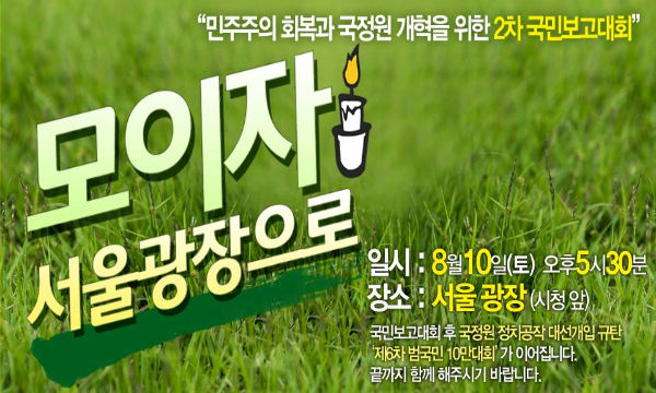 김 대표는 10일 서울광장 대국민보고대회와 이어 10만명 참여를 목표로 시민단체가 주최하는 촛불집회를 언급하며 "나라를 사랑하고 걱정하는 국민의 적극적인 참여를 기대한다."고 밝혔다.