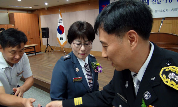 이날 이ㆍ취임식은 전광택 용인소방서장을 비롯한 소방관계자, 심노진 경기도의원과 용인시의원 및 각 지역 의용소방대장 등 100명이 참석한 가운데, 그동안 신갈 여성지역의용소방대를 이끌었던 김정희 대장을 위한 공로패와 선물 증정, 김관숙 신임 지역대장에 대한 임용장 전달 등 식순에 따라 화기애애한 분위기로 진행 되었다.
