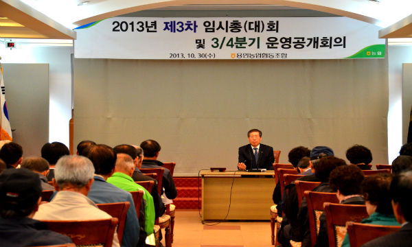 용인농협(조합장 조규원)2013년 제3차 ‘임시총(대)회 및 3/4 분기운영 공개회의’를 개최했다.