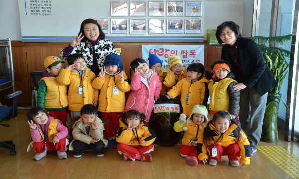 12일 오전, 국 · 공립 처인어린이집(원장 이은주)에서는 유림동(동장 임명숙)동사무소에 비치하며, 한톨 두톨 쌀알을 모금 받아 오던 사랑의 쌀 항아리에, 처인 어린이집에서 어린이들이 직접 농사를 지은 쌀20kg을 사랑의 쌀 항아리에 고사리 손으로 정성을 담았다.