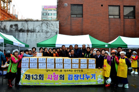 김장나눔행사를 진행하던 용인농협 관계자는 “400상자 분량의 김장김치는,사회 저변의 소외된 이웃들과, 저소득층 독거노인 등에게 김장김치를 전달 할 예정”이라고 밝혔다.