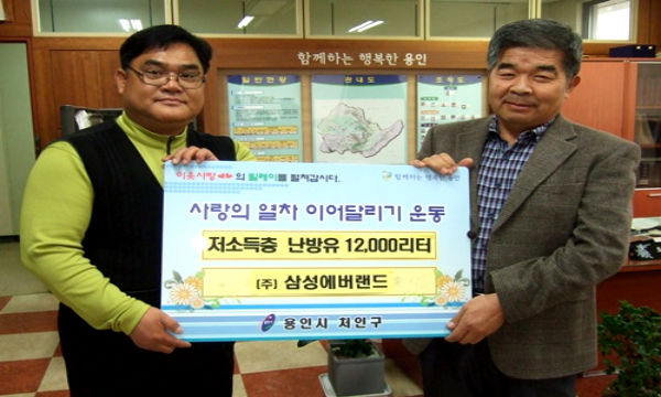 삼성에버랜드는 27일, 포곡읍사무소를 방문하여, 양승준 포곡읍장에게 난방유 12,000L(1,800만원 상당)교환권을 전달하였다.