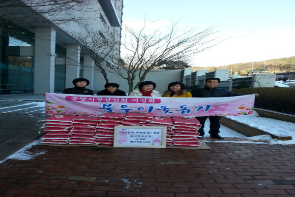 용인중앙시장 여성회(회장 박옥순)가 지난 17일, 연말연시 이웃돕기 용인시 ‘사랑의 열차 이어달리기’ 운동에 백미 50포(10㎏/포)를 기탁했다.