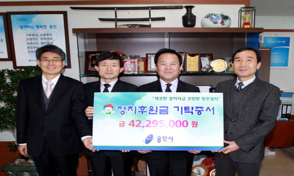 이날 김학규 용인시장은 "공직자들이 앞장서 소액다수의 정치후원금 기부 문화 확산으로 우리나라 정치문화가 성숙하고 발전되길 바란다.”고 말했으며, 이에 오효윤 처인구 선관위 사무국장을 비롯한 기흥구, 수지구 선관위 사무국장은 정치발전을 위한 용인시의 노력과 정성에 감사의 뜻을 나타냈다.
