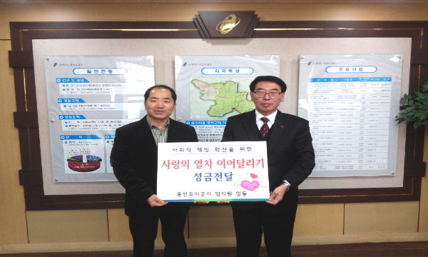 같은 날 용인도시공사도 직원들이 자발적으로 성금을 모금하여 100만원의 성금을 처인구에 기탁하였다.