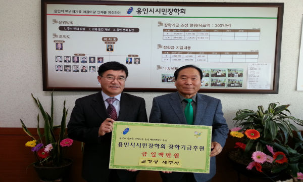 용인시시민장학회(이사장 김기원)에 용인시디지털산업진흥원(상임이사 유종수)㈜에스비 신소재, 참 세무법인, 서은호 전 NH 농협중앙회 용인시지부장이 각100만원 씩 총400만원의 장학기금을 기탁했다.