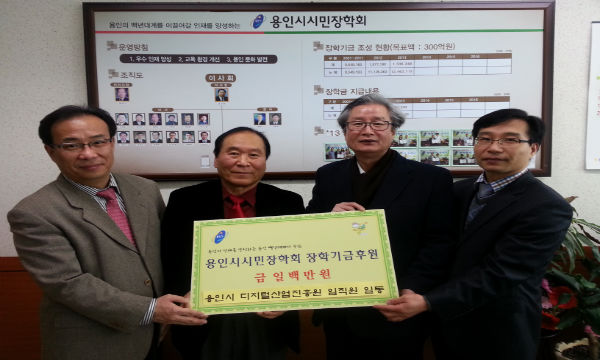 용인시디지털산업진흥원은 유종수 원장 외 전 직원이 합심하여, 글로벌 경쟁력을 갖춘 IT 기업을 육성하기 위해, 다양한 맞춤형 지원사업에 역점을 두는 한편, 지역사회 발전에 기여하고자 전 직원이 십시일반 모은 장학기금을 전달했다.