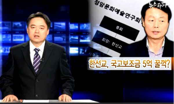 <뉴스타파> 보도에 따르면, 현재 국회 미래창조과학방송통신위원장(미방위원장)인 한 의원은 국회 문화체육관광방송통신위원회 간사를 맡을 당시인 지난 2012년 1월, ‘정암 문화예술연구회’라는 단체를 만들어 문화부에 비영리민간단체로 등록했다. 하지만 회원명부를 입수해 조사한 결과, 회원 절반 이상이 한선교 의원과 연관이 있는 사람들인 것으로 확인됐다.