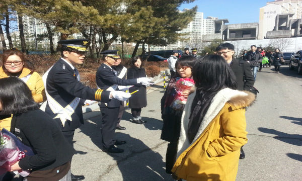 용인동부경찰서(서장 총경 정승호)는 최근 졸업시즌을 맞아 학생 간 건전한 졸업문화 정착을 위해 지난 11일, 백현중학교에서 강압적 졸업식 뒤풀이 예방활동을 전개했다. 이날 캠페인에서는 정승호 서장을 비롯해 학교장, 교사, 학부모 폴리스, 청소년지도위원회, 학교전담경찰관 등 20여명이 참석한 가운데, “졸업생 및 학부모에게 졸업식 뒤풀이의 잘못된 사례와 대처방안 등이 담긴, 전단지와 홍보물을 배부하면서, 건전한 졸업식 행사가 이뤄질 수 있도록 관심을 가지고 함께해 줄 것”을 당부했다.