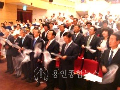 15일 오전 11시 용인시 문화복지 행정타운 3층 문화예술원에서 광복회용인시지회(지회장 송기성)에서 주관한 “제66주년 광복절 기념식”이 송기성 광복회 용인시지회장, 김학규용인시장, 심노진, 권오진, 김기선, 임현수, 조양민도의원과 이상철 용인시의회의장, 이우현부의장, 이윤규 도시건설위원장, 박남숙 자치행정위원장, 정찬진 운영위원장, 지미연. 신현수, 이희수, 홍종락, 추성인, 김중식, 이건한 시의원과 김성렬 용인동부경찰서장, 김장호 용인문화원장, 서은호 농협용인시지부장, 원유학 용인시해병전우회 회장 과 사회 단체장들 등 시민 400여명이 참석한 가운데 엄숙하게 진행되었다.