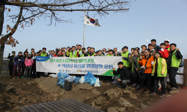 이날 방두환 지부장은“용인의 명산 석성산을 찾아 사업추진 결의 다짐과 등산로 환경정화 운동을 하게 된 것에 대해 뜻 깊게 생각하며, 금년 인사이동으로 많은 직원 전출입이 있었다. 전출입으로 인해 업무공백이 발생하지 않도록 해 주시고, 각종 사업추진에 있어 전 직원이 한마음 한뜻으로 최선을 다해 달라”고 말했다.