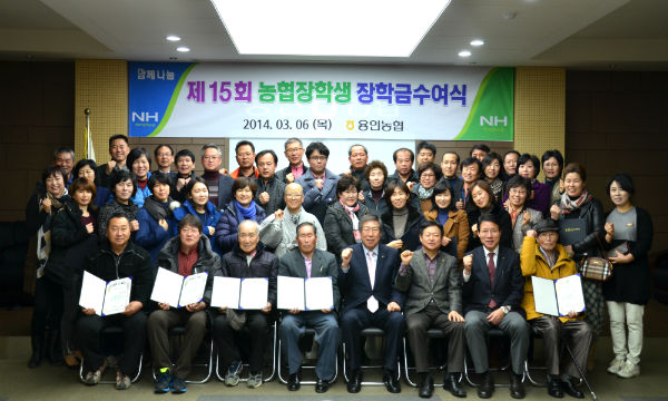 조규원 조합장과 용인농협 간부들, 그리고 장학금 수혜자들의 부모와 학생들이 참석한 가운데 5천만원의 장학금을 50명에게 전달했다.