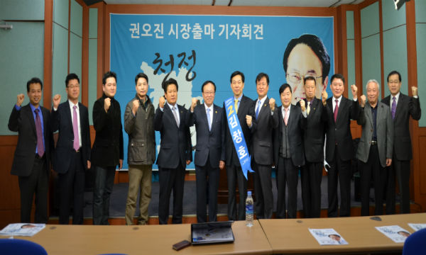 12일 오전 용인시청 3층 브리핑 룸에서, 권오진 경기도의원이 6월4일치뤄지는 전국동시 지방선거에, 용인시장 예비후보 출마를 공식으로 선언하는 기자간담회를 가졌다.