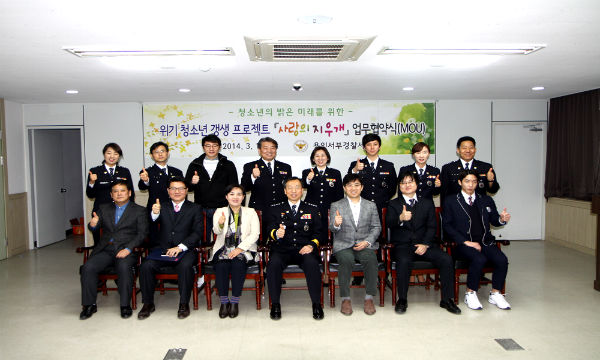용인서부경찰서(서장 총경 이 석)에서는 19일 오전 10시, 3층 회의실에서 위기청소년 갱생을 위한‘사랑의 지우개’추가 협약식을 개최했다. ‘사랑의 지우개’는 피부과 병원과 청소년상담복지센터, 지역아동센터가 힘을 모아 위기청소년들의 신체적․정신적 상처 치유할 목적으로 작년 10월말 용인서부경찰서에서 개최한 업무협약식이다.