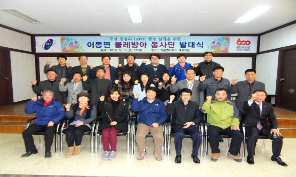 용인시 처인구 이동면은 지난 14일 면사무소 대회의실에서 ‘이동면 물레방아봉사단’ 발대식을 개최하고 자원봉사 활동에 나설 것을 결의했다.