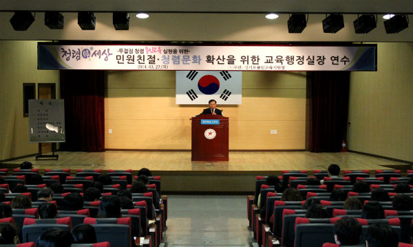 용인교육지원청(교육장 차혜숙)은 27일(목) 본청 대강당에서 최일선에서 행정업무를 담당하고 있는 교육행정실장 180여명을 대상으로, 민원친절 및 청렴교육을 가졌다.