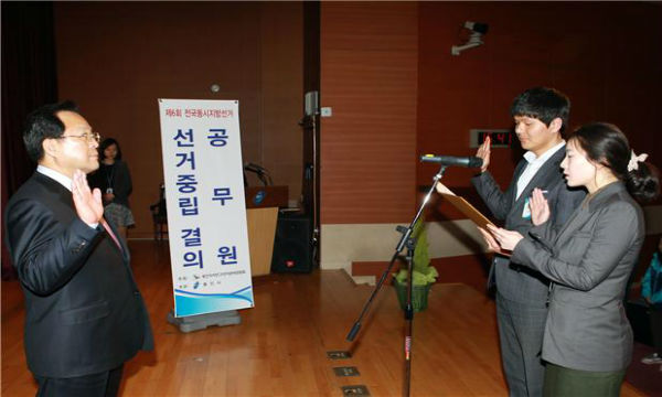 용인시청 소속 공무원은 2014년 6월 4일 실시하는 제6회 전국동시지방선거에 있어 공무원의 선거중립의무 준수 및 선거관여 방지를 위하여 다음과 같이 결의한다.