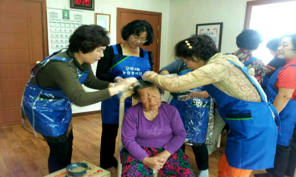 봉사단은 지역 어른신들을 위해 직접 방문하여 머리 커트와 염색 등 봉사활동을 하였다.