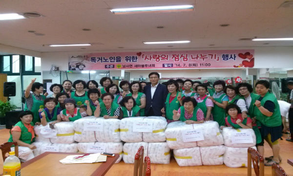 또 거동이 불편한 10여명의 독거노인 가구에는 직접 찾아가, 삼계탕과 여름 이불 1채씩을 전하고 쾌적하고 건강한 여름을 보내시길 기원 드렸다. 남사면 새마을부녀회는 지난 4월 11일, 사랑의 일일찻집을 열고 관내 기관, 기업체, 주민들의 적극적인 동참으로 이웃돕기 기금을 조성, 이번 사랑의 점심 나누기 행사를 추진했다.