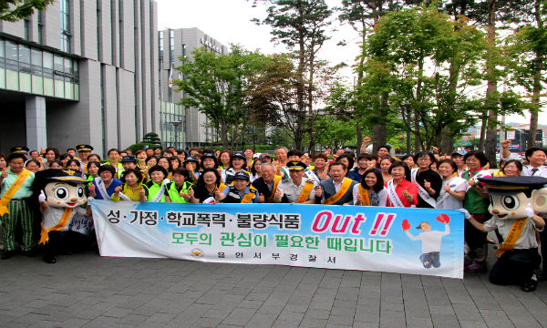 이날 캠페인은 경찰대학 소속 의장단의 화려한 총검술 시범으로 캠페인의 시작을 알렸으며, 참석자 전원이 수지구청 주변 상업지구 일대를 돌면서 성․가정․학교폭력, 불량식품 예방뿐만 아니라, 아동․노인학대,