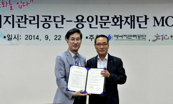 용인문화재단(대표이사 김혁수)과 에너지관리공단(이사장 변종립)은 9월 22일(월) 오후 2시 에너지관리공단 대회의실에서 업무협약(MOU)을 체결했다.