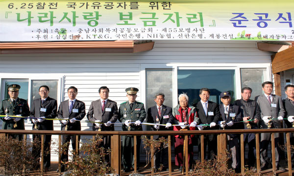육군 제55보병사단(사단장 육군소장 노희준)은 3일 이천시 설성면에 위치한 6·25 참전용사인 이호삼(83)옹의 자택에서, 나라사랑 보금자리 214호 준공식을 가졌다.