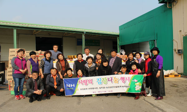 모현농협(조합장 황종락) 임직원과 ‘함께나눔 여성봉사단’은 홀몸어르신과 저소득가구의 월동준비를 위해, 모현면 농업경영인들이 재배해서 기증한 무, 배추를 이용해, 2014년 11월5일과 6일 양일간 사랑의 김장나눔 행사를 마련했다.