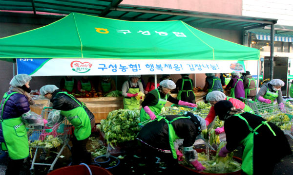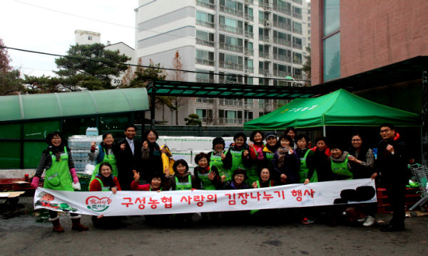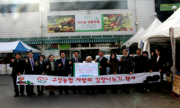 구성농협(조합장 최진흥)은 25일 구성농협 광장에서 ‘사랑의 김장김치 행복 나눔 행사’를 열었다.