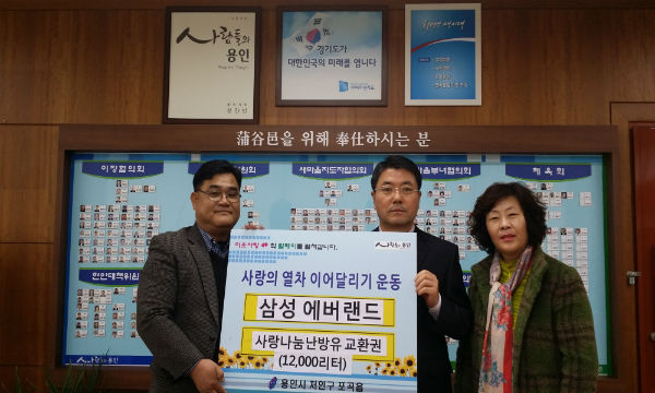 삼성에버랜드는 3일 포곡읍사무소를 방문, 1600만원 상당의 난방유 1만2000리터 교환권을 전달했다.