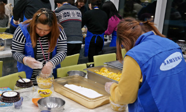 삼성전자가 12월16일(화) 삼성 나노시티 기흥캠퍼스에서 건강차(모과, 유자차)와 오색 떡을 만들어, 이주민•다문화가정 지원시설에 전달했다.