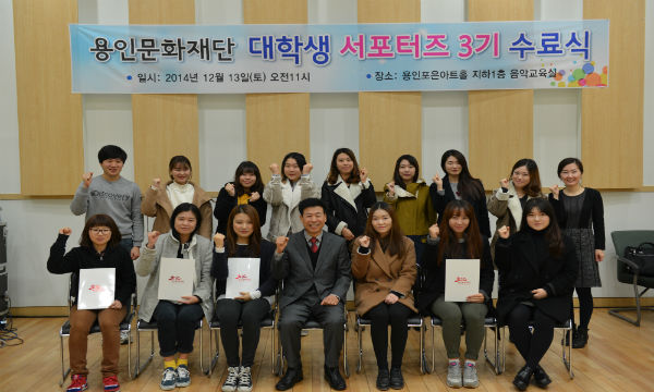 (재)용인문화재단(대표이사 김혁수)은 지난 13일 오전 11시 용인포은아트홀 음악교육실에서 대학생 서포터즈 3기 수료식을 개최했다.