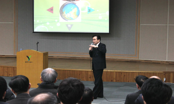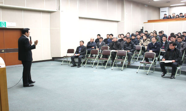 김한섭 사장이 직접 강사로 나서 고정관념 탈피를 주제로 진행된 본 강연에서는, 기존의 인식을 거꾸로 보는 발상의 전환을 사례로 제시하였다.