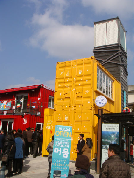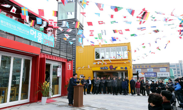 용인중앙시장 활성화와 관광자원화를 위해 볼거리․먹거리를 활용하고, 낙후된 공간을 새롭게 재구성, 오픈한 ‘머뭄 카페’는 빨강동과 노랑동의 컨테이너 카페로 건축되어 각각 시장 도시락체험과 음료판매가 가능한 공간으로, 2013 문화체육관광부 도시관광활성화사업에 선정, 국비와 시비가 각각 50%씩 투입되었다.