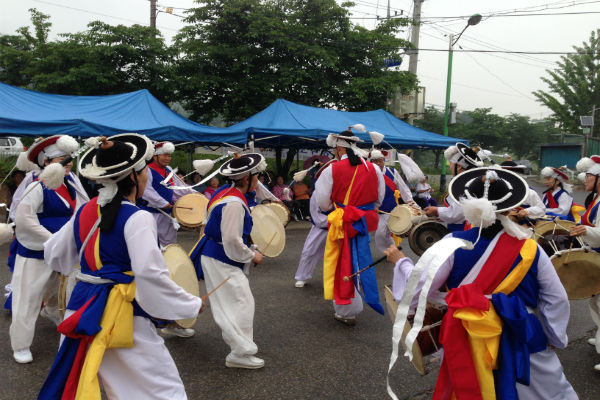 이어 백암농악보존회는 지난 달 30일 마을과 벽화에 새 생명을 불어넣는다는 취지로, 숲원이 복지회관 앞 광장에서 신명나는 농악놀이를 벌였다. 이날 200여명의 주북리 주민들이 함께 즐겼다.
