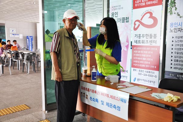 용인시처인노인복지관에서는 복지관 이용 어르신들에게 메르스 주요 증상 · 예방수칙 등을 공지하기 위해, 복지관 전체 게시판마다 공지문과 포스터를 부착하여 메르스 증상 및 예방법을 숙지하고, 이행할 수 있도록 안내하였으며, 복지관 소속 생활관리사 73명이 독거어르신 1,500여명에게 메르스 예방수칙을 안내하고, 어르신 건강여부를 유선상 지속적으로 점검하고 있다.