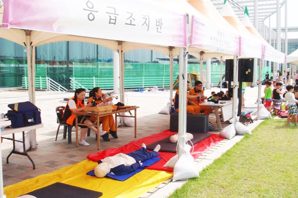 그리고 아이들의 안전을 위해 용인소방서 안전요원들이, 수영장 옆에 계속 상주하며 아이들의 물놀이를 주시하고 있으며, 용인소방서 여성 의용소방대에서도 회원들이 시민들에게 인공호흡 등을 가르치며, 아이들의 안전에 만전을 기하고 있었다.