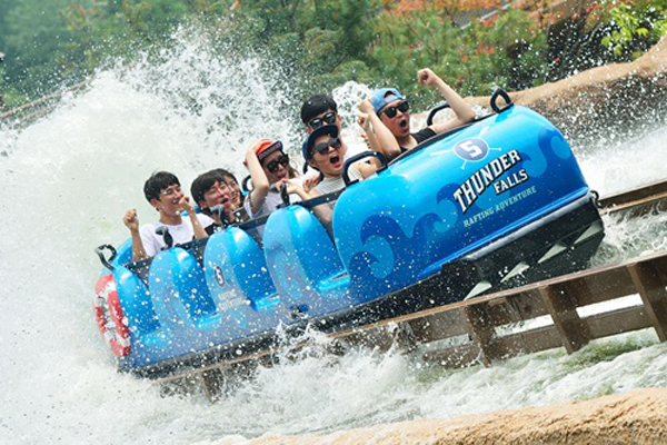 우선, 약 6,600㎡(2,000평) 면적에 지어진 '썬더폴스'는 국내에 있는 모든 후룸 라이드 시설 중 최대 규모를 자랑한다.
