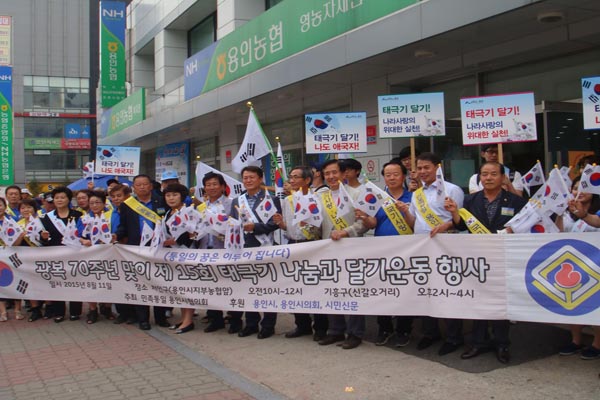 대한민국의 정체성과 국가관을 새롭게 정립하기 위한, 그리고 광복 70주년을 기념하기 위한 행사의 일환으로, 태극기 무료로 달아주기와 태극기 무료로 나눠주기 운동을. 오세영 경기도의회 의원. 박원동. 김상수 용인시 의원과 조봉희 전 경기도의원. 이상철 전 용인시 의회 의장. 임관철 전 무공수훈자회 용인시 지회장 등 200여명이 참여한 가운데 진행 되었다.