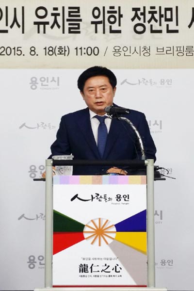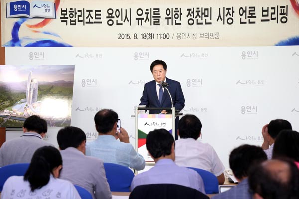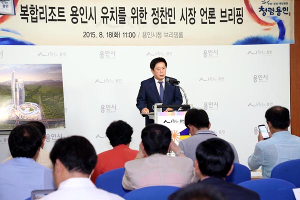 정찬민 용인시장은 18일 시청에서 브리핑을 갖고, 한국형 복합리조트 5대 강점을 강조하면서, 복합리조트 선정에 대한 강한 의지를 표명했다.