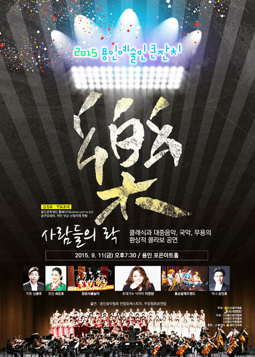 (재)용인문화재단과 용인예총이 함께하는 ‘2015 –사람들의 樂’이, 오는 11일 오후 7시 30분 용인포은아트홀에서 개최된다.
