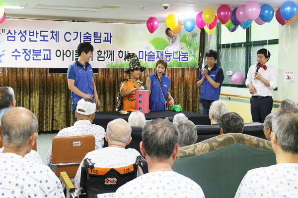 9월2일 오후, 경기도 이천에 위치한 양지요양병원이, 마술공연을준비하는 용인 백암초등학교 수정분교(이하 수정분교) 학생들과 삼성전자 직원들로 분주하다.