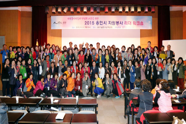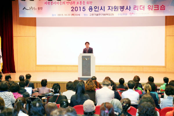 (재단법인) 용인시자원봉사센터에서는 22일, 처인구 백암면 고등기술연구원에서 정찬민 용인시장을 비롯해, 자원봉사단체장 및 회원 200여명이 참석한 가운데, 지역의 자원봉사 활성화를 위해 헌신하는 자원봉사자들의 노고를 격려하고, 봉사단체 간 네트워크 형성을 위한 ‘2015 용인시 자원봉사 리더 워크숍’을 개최했다고 밝혔다.