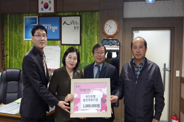 성금도 잇따랐다. 동백지역아파트연합회는 지난 19일 기흥구에 30만원의 성금을 전달했으며, 국민은행 용인대로점은 지난 16일 성금 100만원을 처인구 이동면에 전했다. 양지면새마을지도자협의회도 양지면사무소에 250만원 상당의 백미42포(20㎏/포)를 기탁했다. 상갈동의 보라중학교 학부모와 학생, 교직원들도 지난 14일 직접 담근 김장김치 400포기(100상자, 상자/10㎏)를 상갈동주민센터에 전했으며, 한국석유공사 용인지사는 지난 18일 처인구 동부동주민센터에 김장김치 56상자(12kg/상자)와 용인쌀 27포(20kg/포)를 전했다. 천일토건(주)을 운영하고 있는 박상협 대표는 33만원 상당의 장갑을 중앙동에 전달했다.