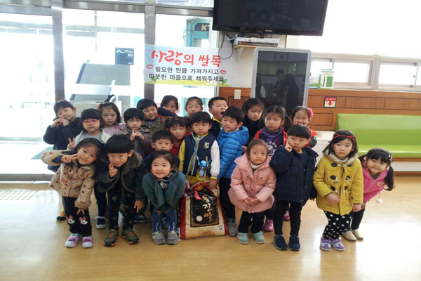 어린이집 원아들도 불우이웃 돕기에 동참했다. 처인구 유방동에 위치한 시립 유림어린이집 원장과 원아 20명은 지난 17일 유림동주민센터를 방문해 사랑의 쌀 20㎏ 1포와 원아들이 각자 조금씩 모아온 봉지쌀 5㎏을 기탁했다.