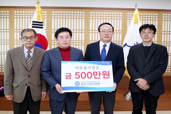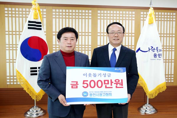 경기도옥외광고협회 용인시지부(지부장 김희배)는 지난 16일 용인시청을 방문해 이웃돕기를 위한 성금 500만원을 기탁했다.
