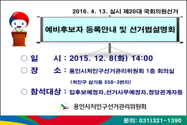 ※ 기타 자세한 사항은 용인시처인구선관위(031-321-1390), 용인시기흥구선관위(031-322-1390)로 문의하시기 바랍니다.
