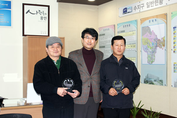 용인시 수지구는 지난 15일 구청장실에서 깨끗한 도시환경을 가꾸기 위해 20년간 구슬땀을 흘린 환경미화원 조남식씨(61)와 이기범씨(61) 등 2명의 정년퇴임식을 가졌다고 밝혔다.