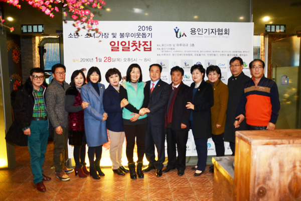 1월28일 오후, 용인기자협회(회장 천홍석)에서 ‘2016 소년·소녀가장 및 불우이웃돕기 일일찻집’을 용인시 처인구 삼가동 하루와규 3층에서 열었다.