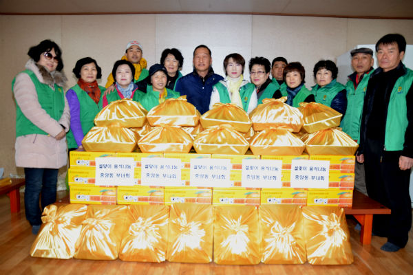 5일 용인시 처인구 중앙동 새마을부녀회(회장 이영임)에서는 지역의 어려운 이웃들에게, 털목도리, 감귤1상자, 떡국 떡 등을 가가호호 방문 하며 전달했다.