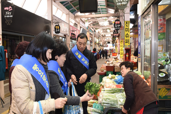 용인중앙시장 상인회 사무실을 방문하여 간담회를 갖고, 건의사항을 청취한 후, 전통시장 장보기 체험에 참여하여, 설 제수용품 등을 구입하고, 경기침체로 어려움을 겪고 있는 상인들을 격려했다.